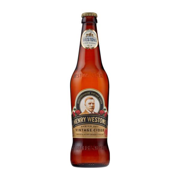 Westons Cider have been making quality ciders from their farm in Much Marcle, Herefordshire since 1880. Henry Westons Vintage Cider (8.2% ABV) is a premium, medium-dry sparkling cider crafted from a single year's harvest of Herefordshire bittersweet apples. Matured in oak vats, it offers a rich, fruity aroma and a smooth, rounded, oaky finish.