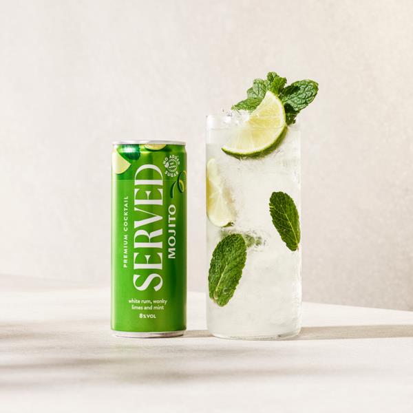 Award-winning SERVED Mojito cocktail. 8% ABV. Made with a double measure of premium white rum, lime, and mint. Crisp, fresh, juicy. Simply chill and serve. Saving you time, money and wastage. Serve bar-quality cocktails consistently in less than 10 seconds.