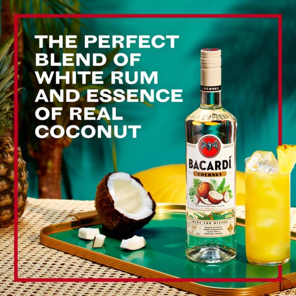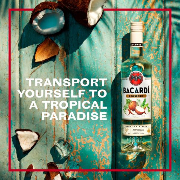 Bacardi Coconut offers the perfect blend of white rum and essence of real coconut. Expertly blended for intense flavour, this BACARDÍ rum delivers a pure aroma and a fresh finish. | Transport yourself to the tropics with Bacardi Coconut, a delicious blend of white rum and real coconut essence. Ideal for easy-to-make cocktails that pack a flavourful punch.