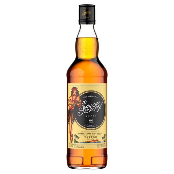 Indulge in the legendary taste of Sailor Jerry Rum, where bold flavours and captivating aromas blend to create an extraordinary spiced rum experience. Crafted with the finest ingredients and infused with a unique vanilla and cinnamon essence, Sailor Jerry Spiced Rum offers a bold taste, balanced to elevate your palate. Embrace the versatility of this exceptional spiced rum, perfect for crafting eccentric cocktails, enjoying neat in a spiced rum glass, or with a cola mixer & cherry garnish for a classic twist; the Jerry Cola. Let your creativity shine as you experiment with different mixology techniques to unlock the full potential of Sailor Jerry's spiced rum. As you savour every sip, feel the spirit of the high seas embodied in the spirit of Sailor Jerry. This beloved rum has earned its place as a favourite among rum enthusiasts, known for its smoothness and remarkable character. Made the old-school way. Whether you're hosting house parties or celebrating life's milestones, Sailor Jerry Spiced Rum adds a touch of excitement to every gathering. Share the joy of a meticulously crafted spiced rum, infused with the essence of vanilla and cinnamon, to make your moments unforgettable. Sailor Jerry Rum stays true to the old-school tradition of spicing high proof rum, resulting in a uniquely bold, smooth and balanced taste. The bold spices meet the sweetness of vanilla and oak, with hints of clove and cinnamon spices. Unlock the treasure of flavours in every bottle of Sailor Jerry Spiced Rum, a perfect companion for sipping and mixing for any occasion. Toast to life's adventures with Sailor Jerry Rum—where the spirit of the open sea and the warmth of spiced goodness converge into a captivating taste that sails beyond ordinary.